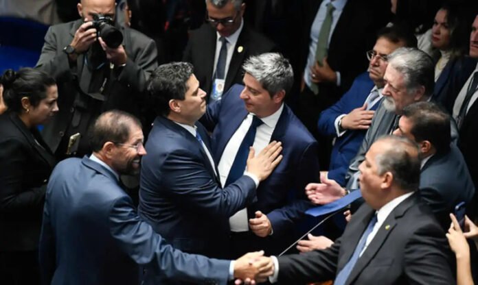 O senador Davi Alcolumbre (União Brasil-AP) foi eleito neste sábado (1º) presidente do Senado pelos próximos dois anos, com 73 dos 81 votos. A reunião preparatória começou pouco depois das 10h e, durante as falas dos candidatos, o senador Marcos do Val (Podemos-ES) e a senadora Soraya Thronicke (Podemos-MS) retiraram suas candidaturas. Concorreram ao cargo, junto com Alcolumbre, os senadores Marcos Pontes (PL-SP) e Eduardo Girão (Novo-CE).