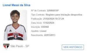 Nesta quarta-feira (21/2), o São Paulo inscreveu no BID, o Boletim Informativo Diário da CBF, um atleta com um nome para lá de curioso: Lionel Messi da Silva. Ele vai disputar torneios de futsal pelo Tricolor paulista.